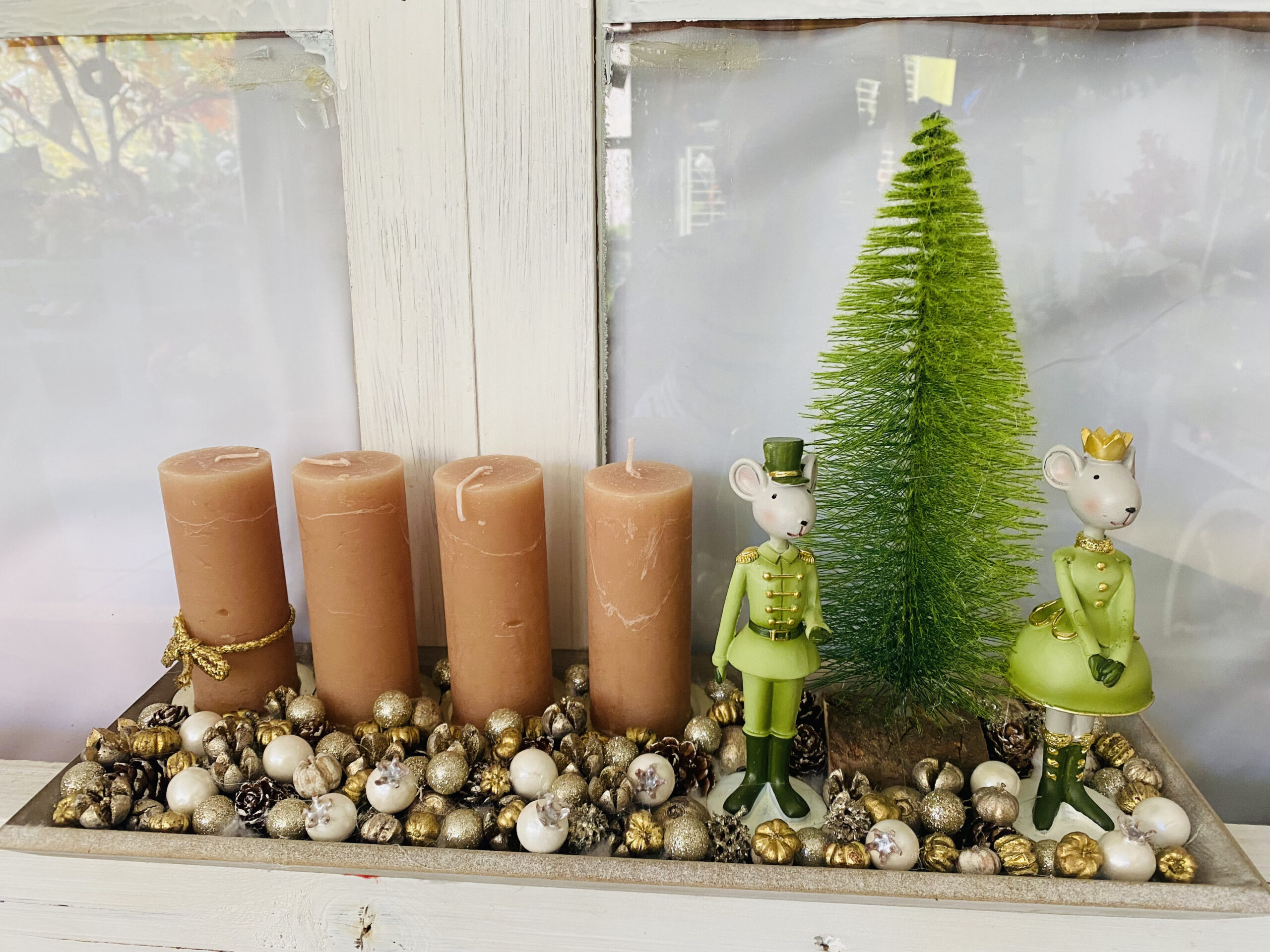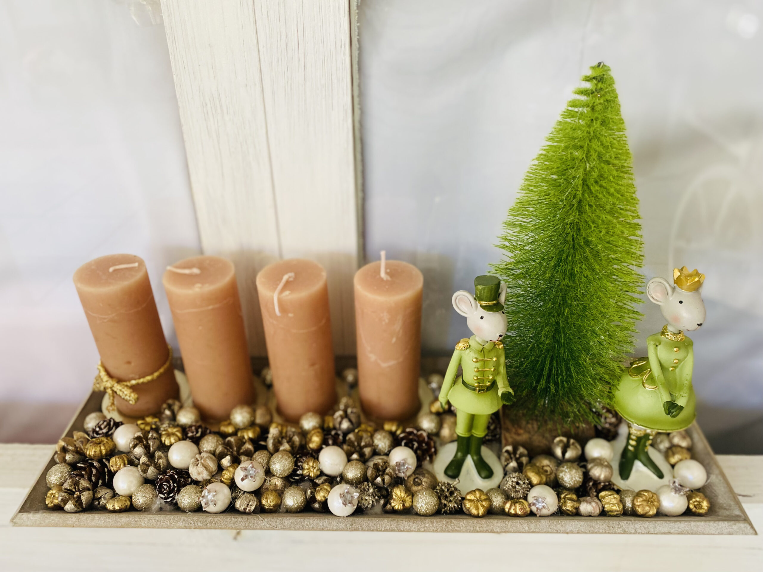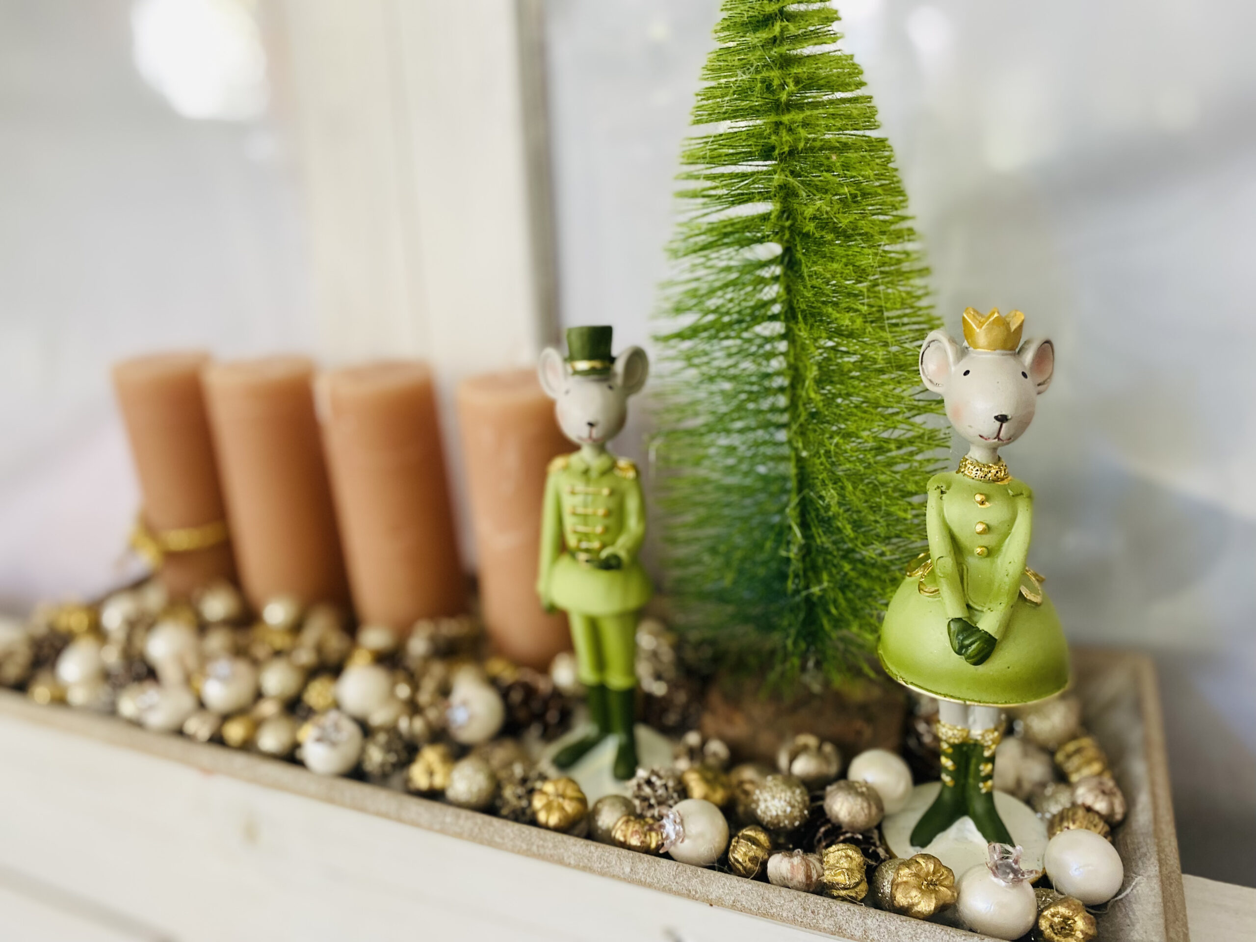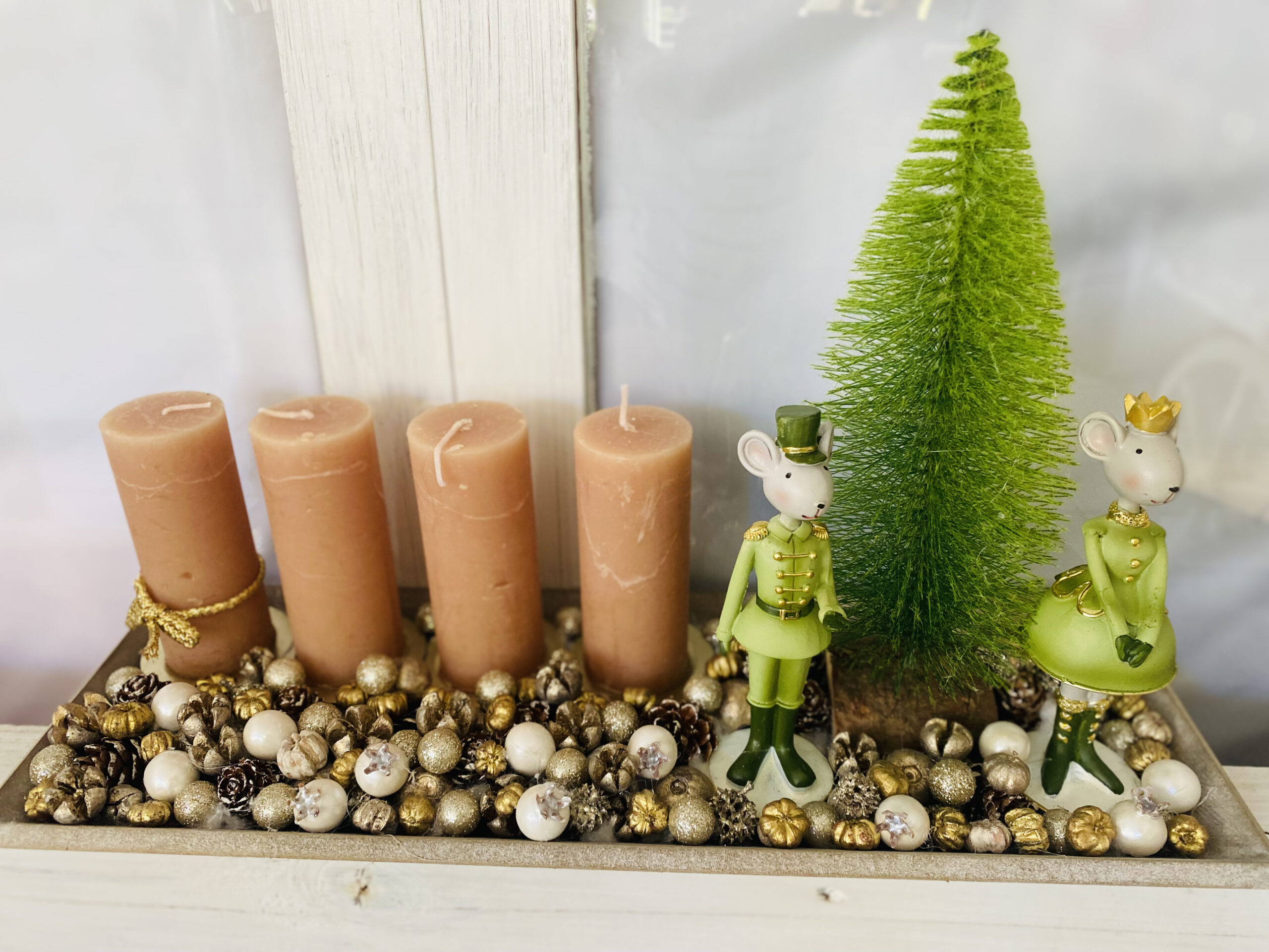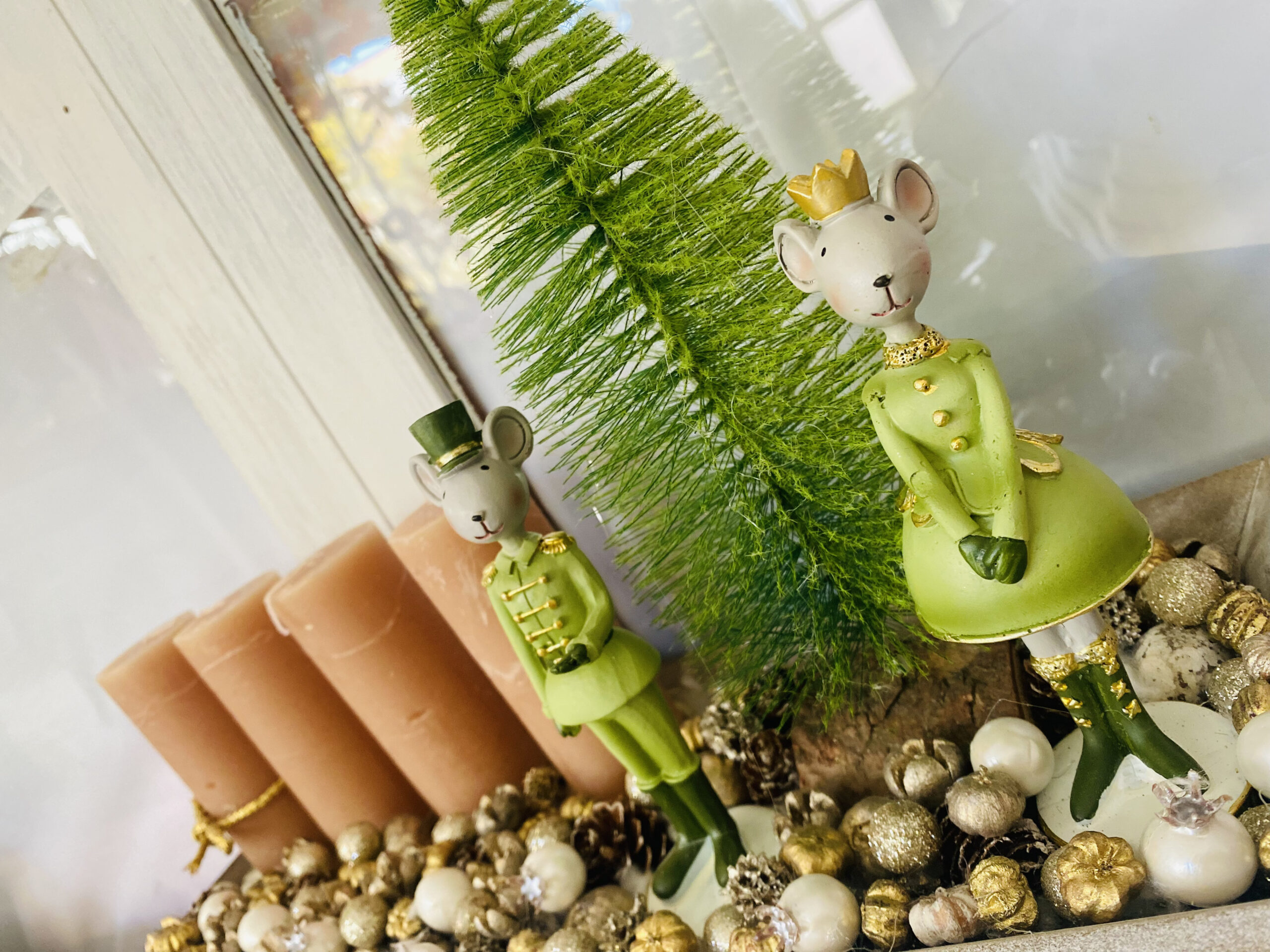 Egérkirály-egérkirálynő adventi asztaldísz.