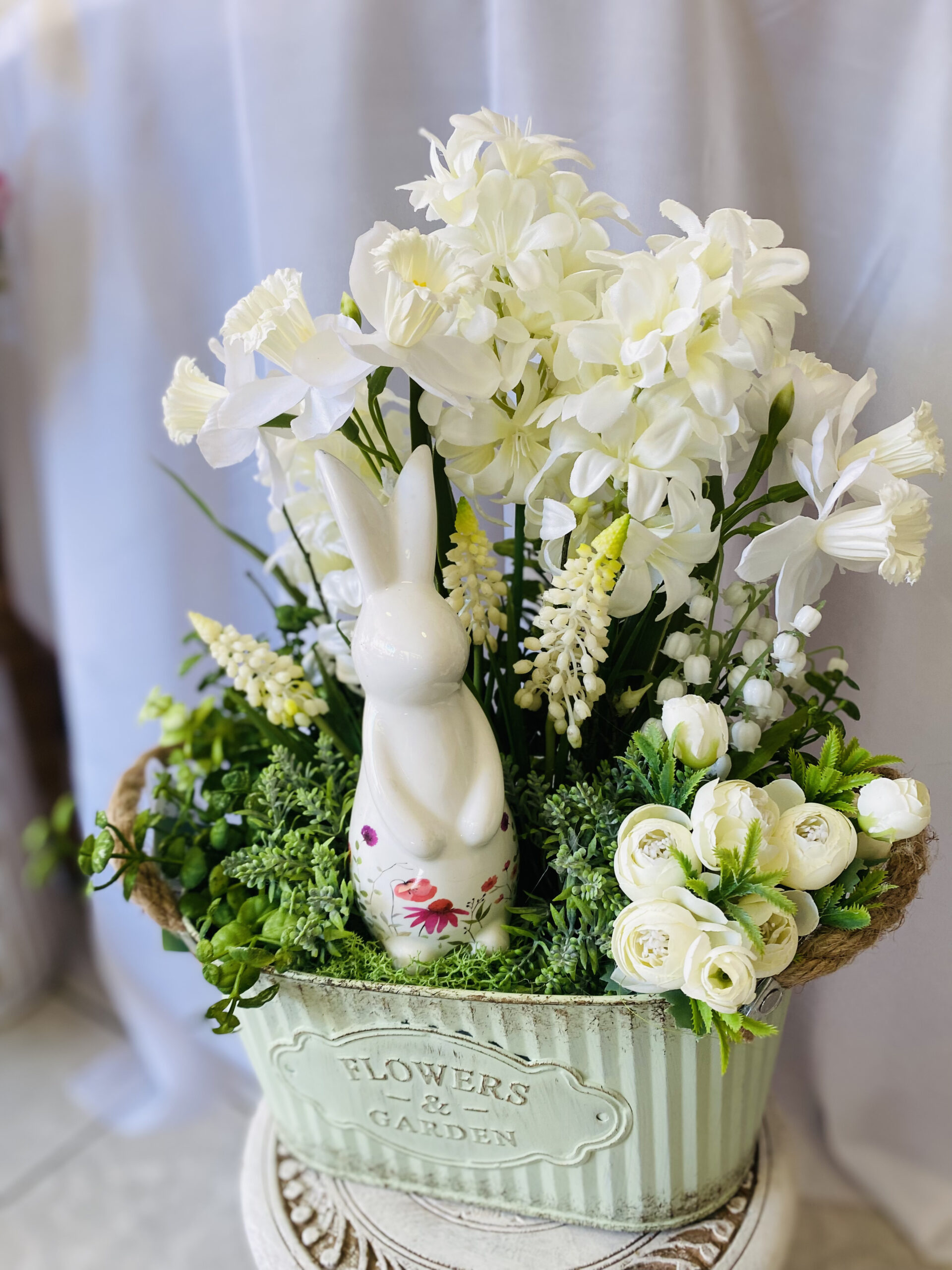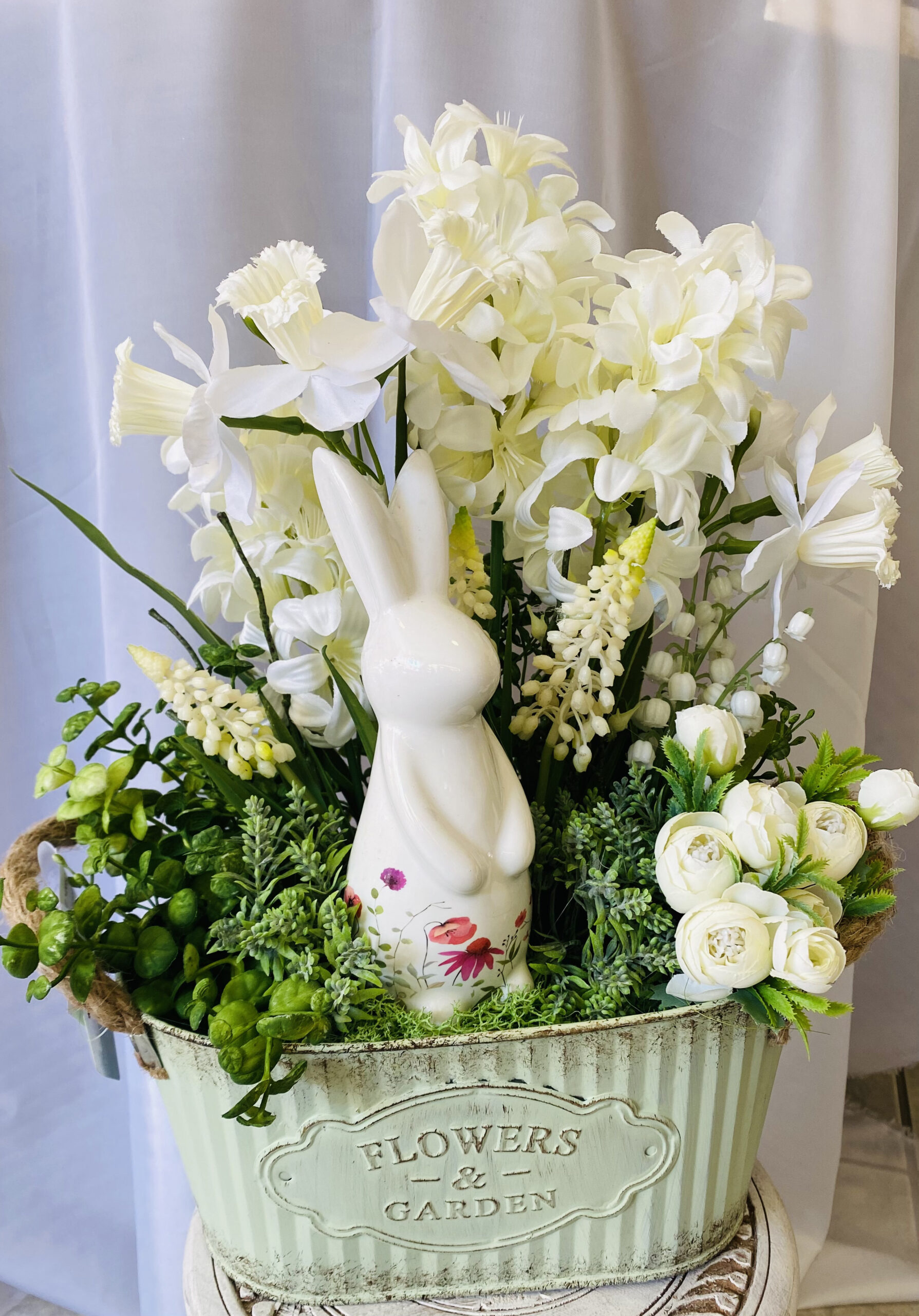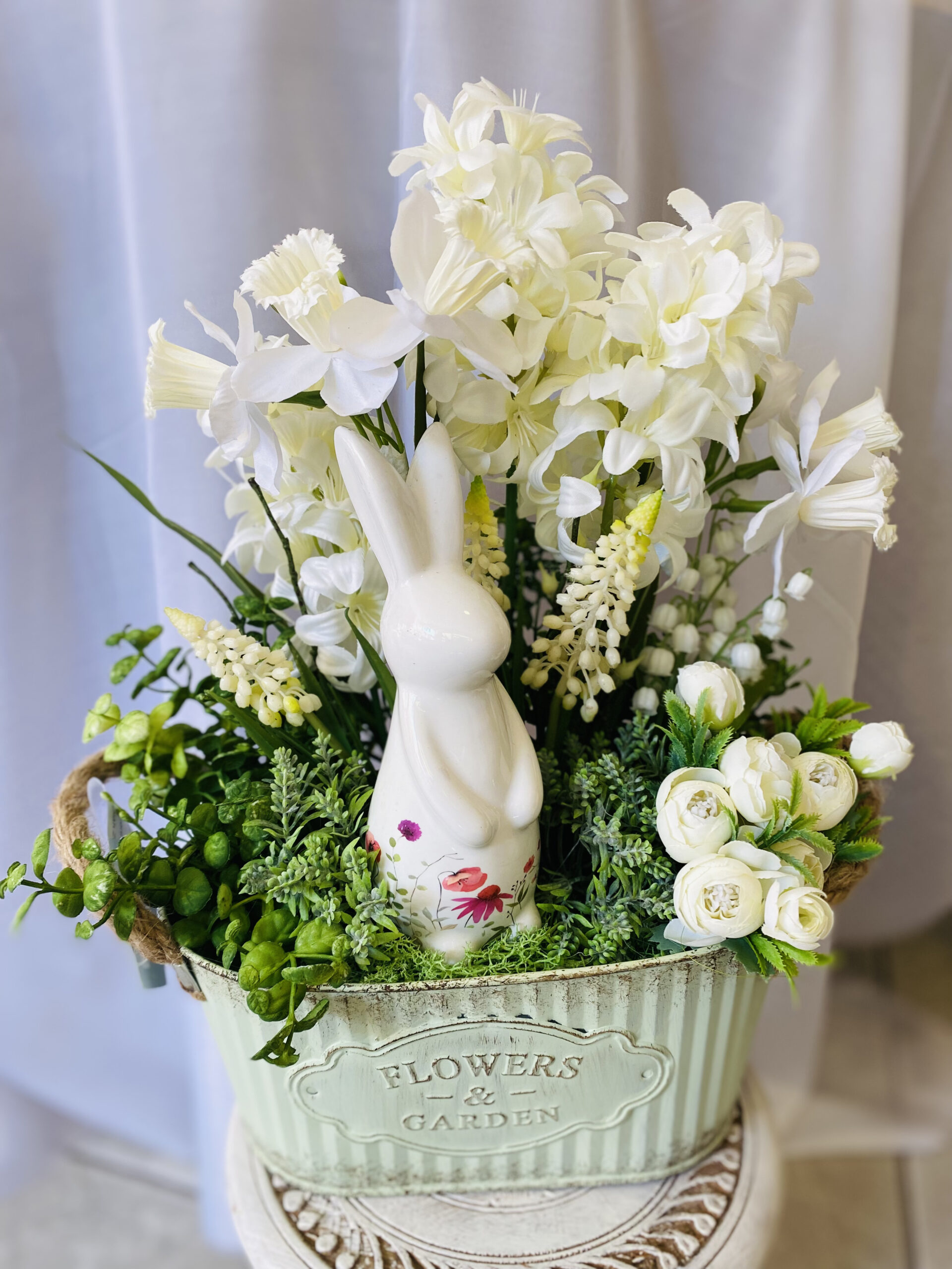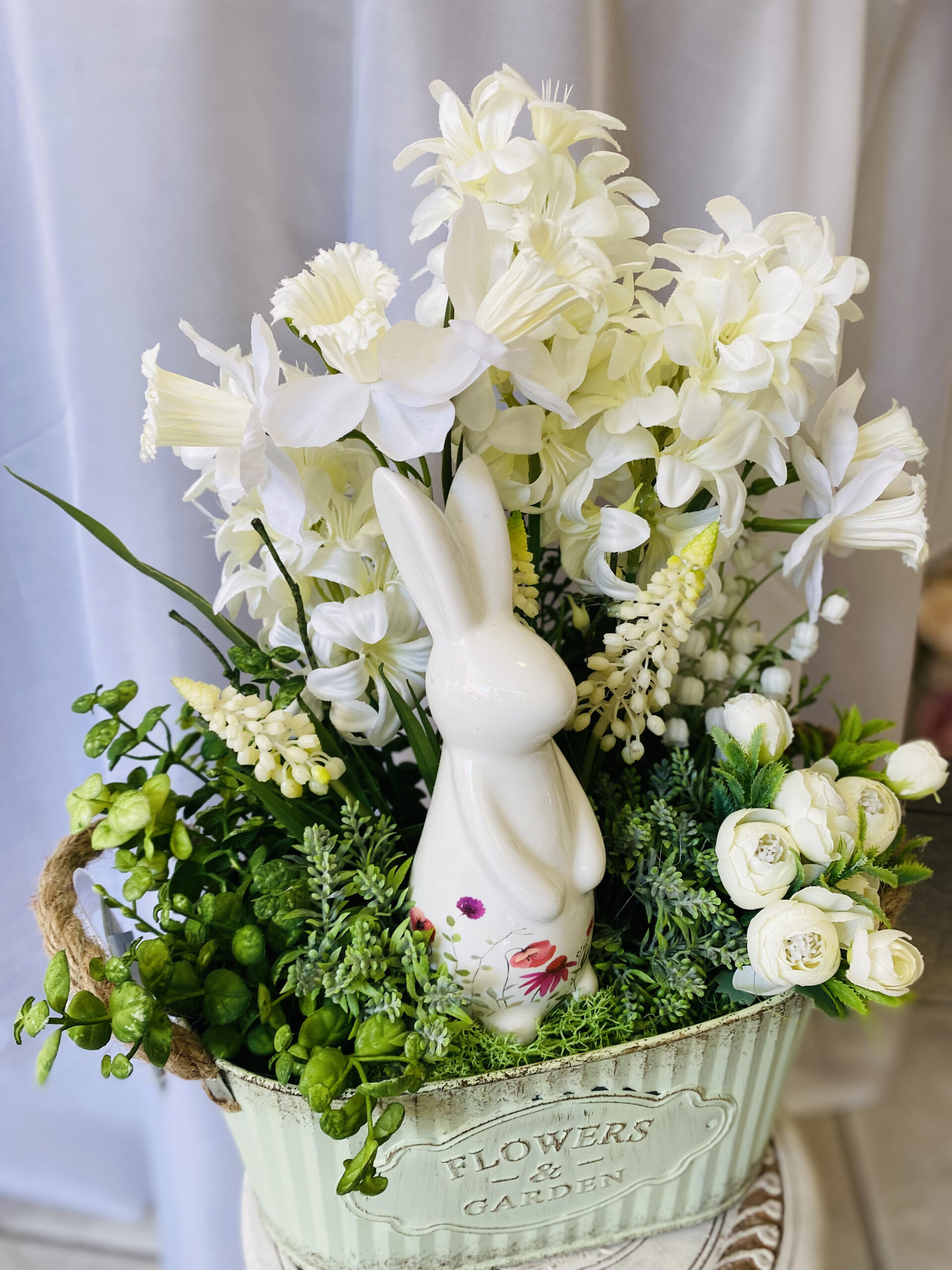 Fehér-zöld nyuszis asztaldísz. mennyiség
