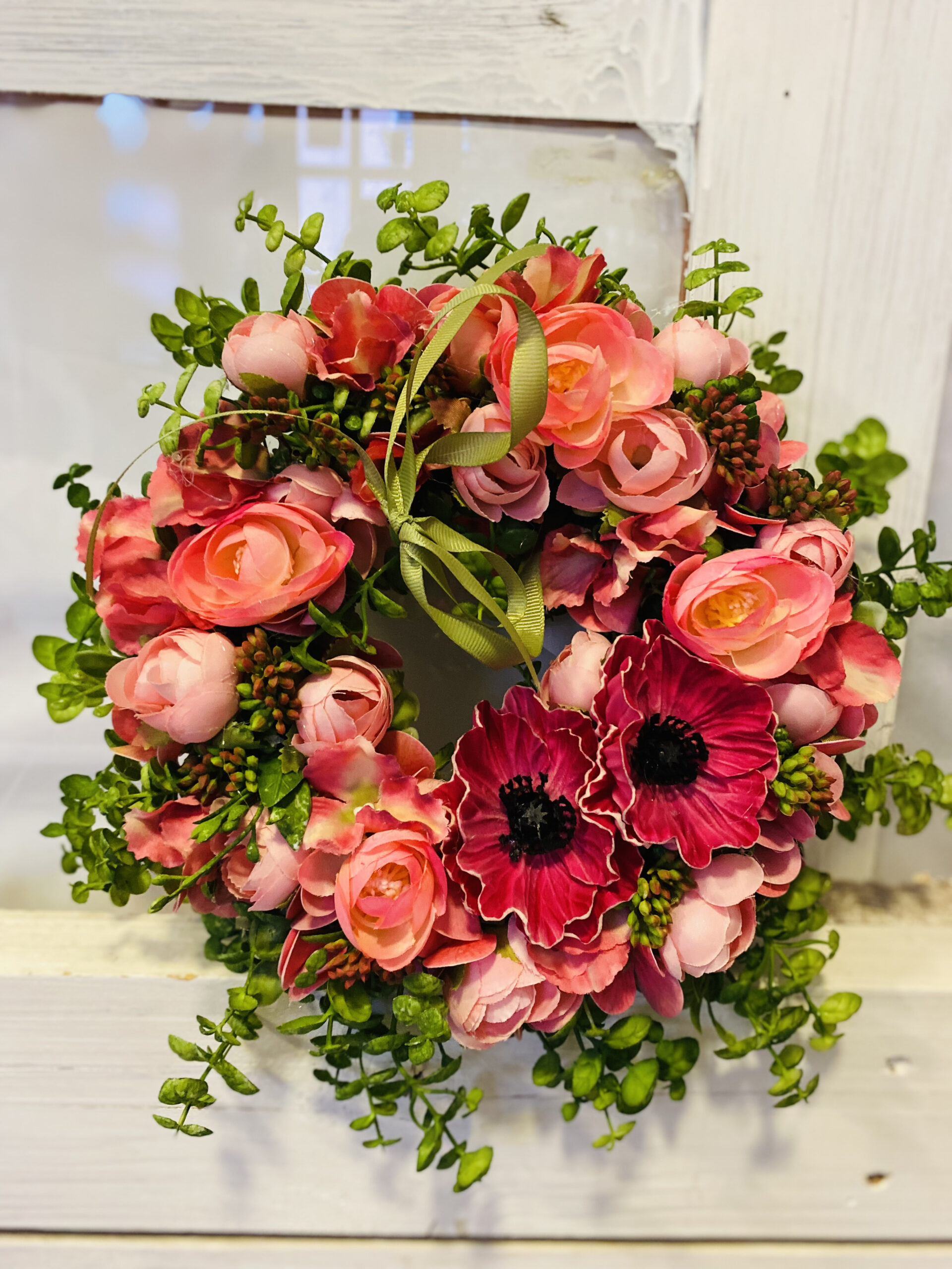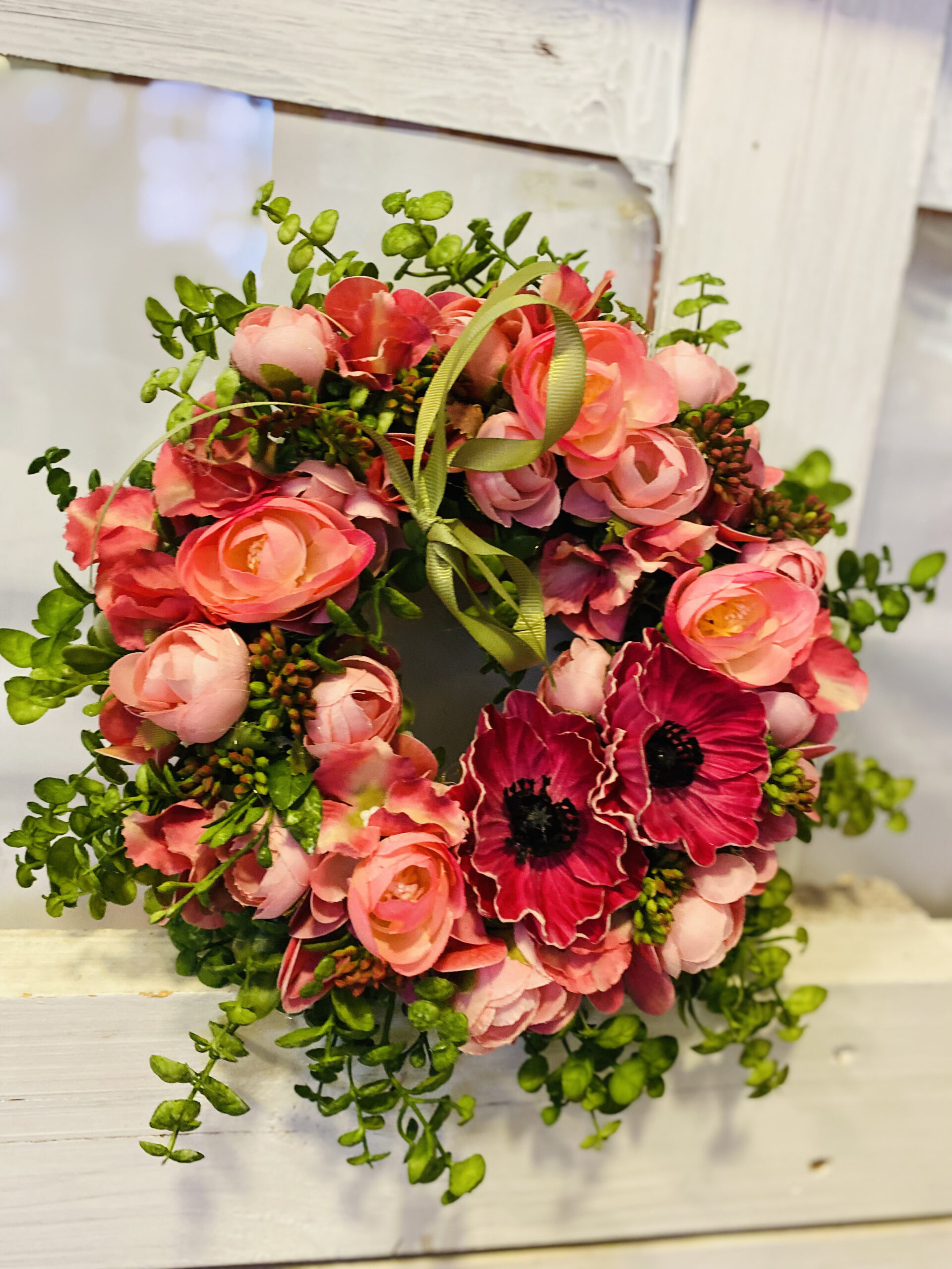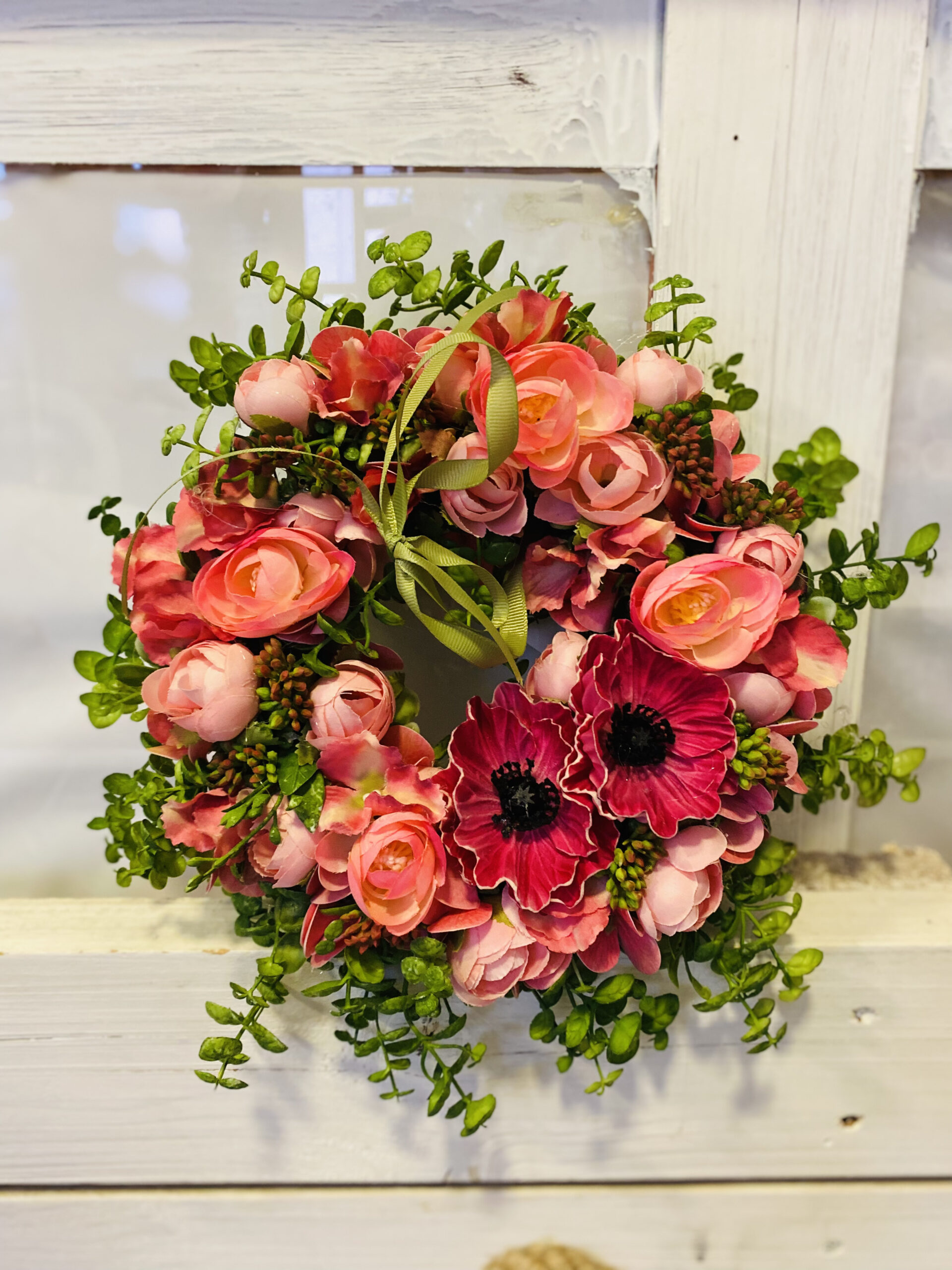 Fehér-rózsaszín ajtódísz.