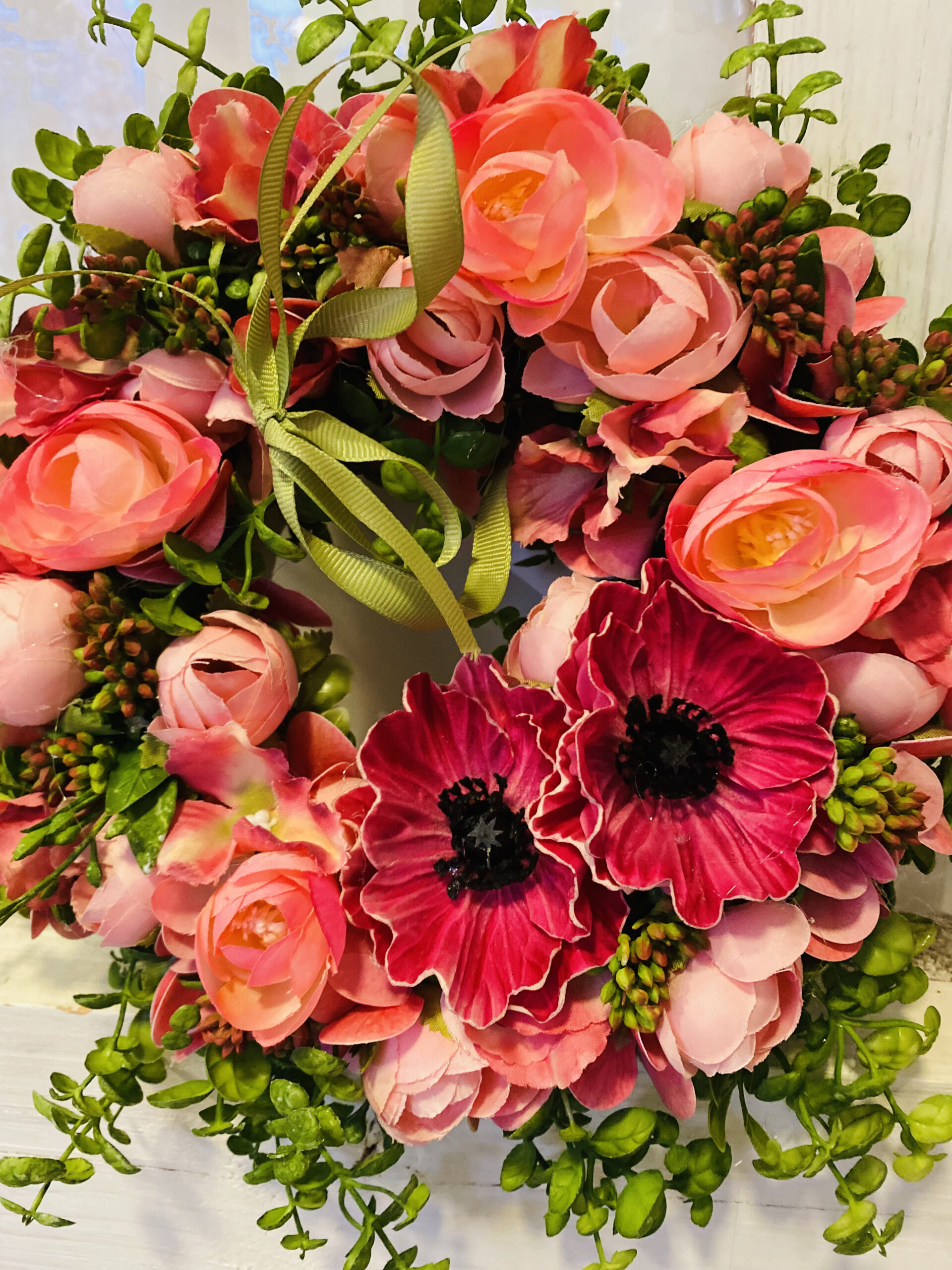 Rózsaszín ajtódísz.